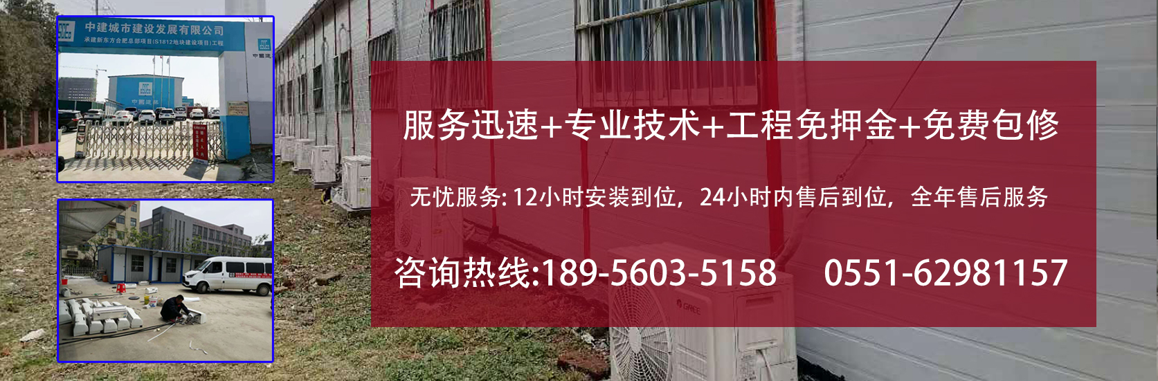 安裝人員經(jīng)驗(yàn)豐富,技術(shù)熟練。中為公司始終保持“服務(wù)第一,效益第二”的經(jīng)營(yíng)理念,對(duì)空調(diào)使用過(guò)程中出現(xiàn)故障,堅(jiān)持12小時(shí)解決問(wèn)題,讓每一位顧客滿(mǎn)意!特別是工地,如果空調(diào)壞了,夏天室內(nèi)溫度接近45攝氏度無(wú)法辦公和休息。公司從事空調(diào)租賃以來(lái),一直堅(jiān)持返修不過(guò)夜,贏得了廣大顧客的充分信賴(lài)!。 服務(wù)電話(huà):189 5603 5158 (0551)6298 1157